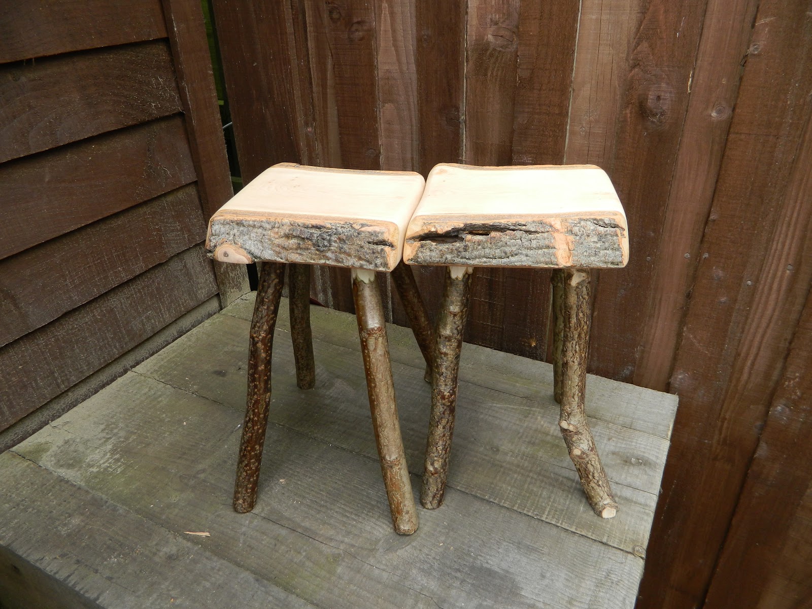 After the little look at the world outside, I got back into the shed and made a couple of little stools . Using hazel for legs and ash for the tops, the ash has the bark still on. I've found if the bark is left on it dries out and really adhere's to the timber as it seasons. This adds something to the rustic look of these little stools . Take a look and see :)